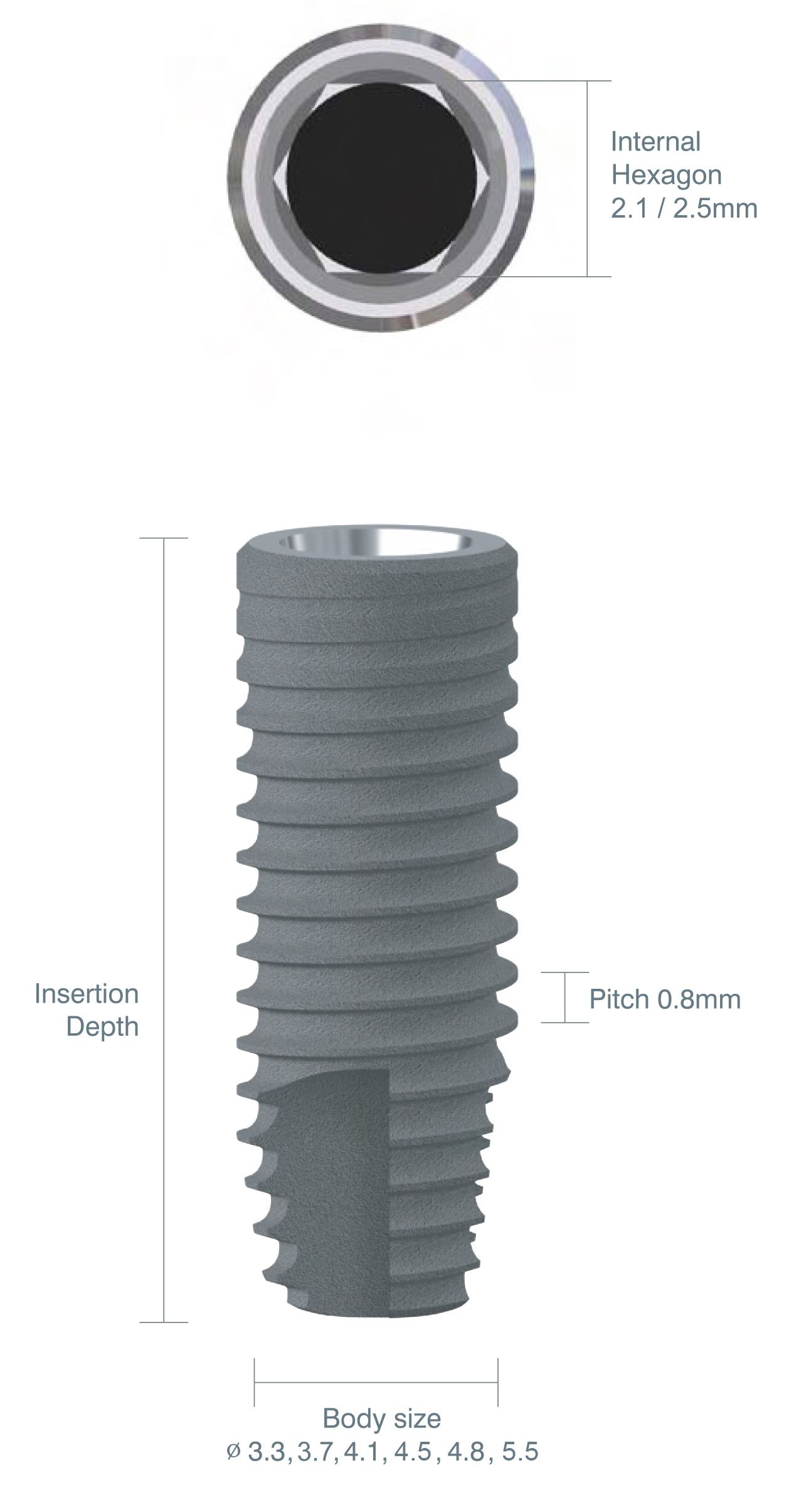 It has angled threads for proper support of bone tissue by the fixture