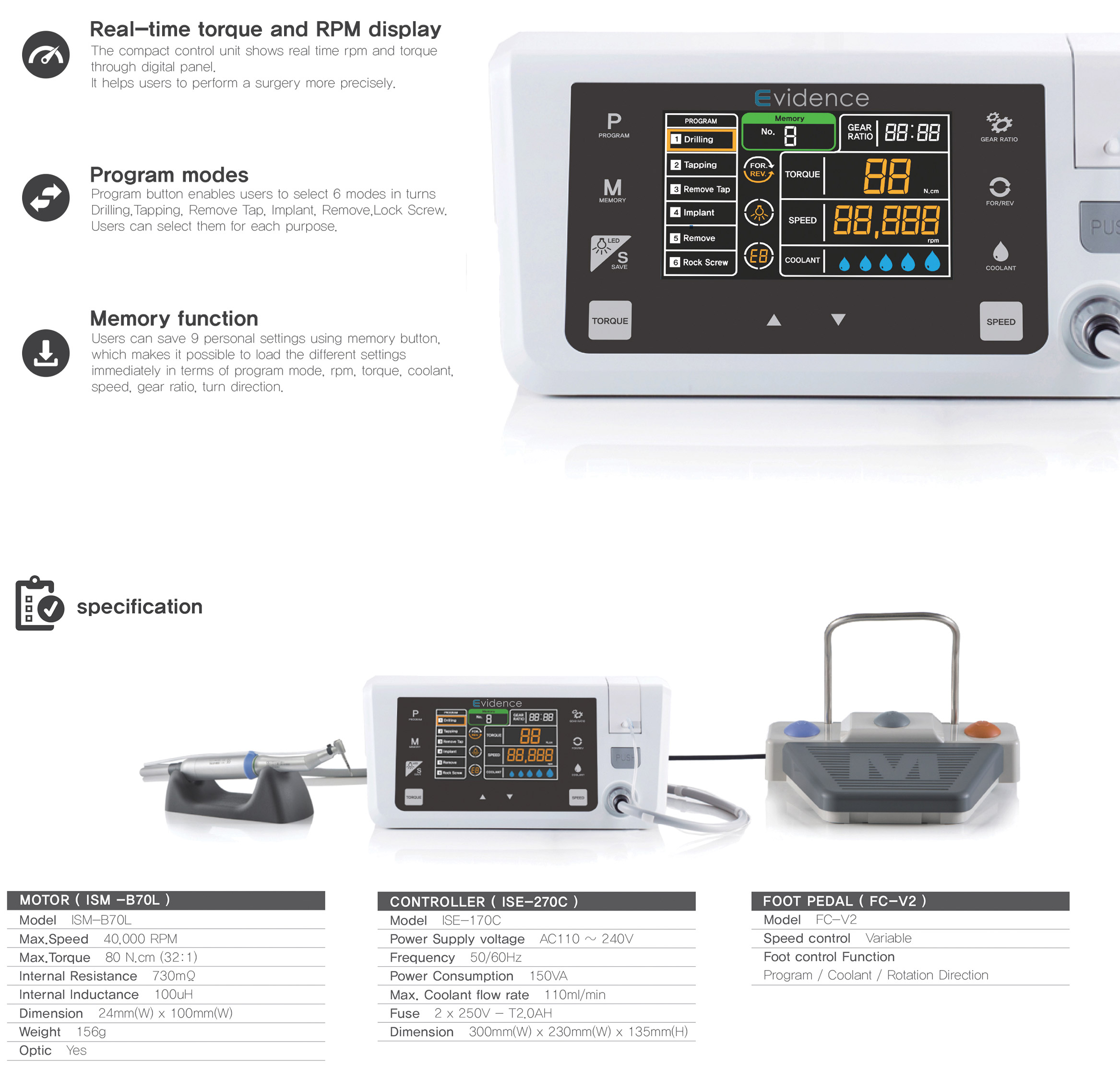 🔻 A device equipped with a powerful optic motor featuring real-time display of speed and torque on the LCD screen.