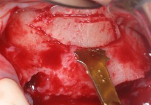 FIGURE 1. A  piezoelectric  saw   (S-Saw;  Bukboo  Dental  Co, Daegu, Korea),  connected to a piezoelectric device  (Surgybone; Silfradent Srl, Sofia, Italy), was used to create the lateral window of the maxillary sinus in all cases  (patient 4)