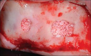 fig. 8. Buccal view after placing the xeno- graft (Bio-Oss; Geistlich) into the sinus.